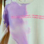 Tøjet bliver malet over flere dage, fotograferet, får tegnet “skrig” og digtet tekst unikt til hvert stykke tøj. For herefter at blive skåret og varmebehandlet for at smelte sammen med tøjet til én helhed, som holder år efter år.