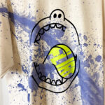 Tøjet bliver malet over flere dage, fotograferet, får tegnet “skrig” og digtet tekst unikt til hvert stykke tøj. For herefter at blive skåret og varmebehandlet for at smelte sammen med tøjet til én helhed, som holder år efter år.