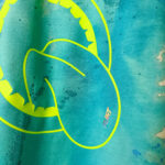 Farver: Blå/grønne nuancer med neon gult skrig og FLIRT logo med regnbue effekt (skifter farve efter lyset)