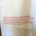 Tøjet bliver malet over flere dage, fotograferet, får tegnet “skrig” og digtet tekst unikt til hvert stykke tøj. For herefter at blive skåret og varmebehandlet for at smelte sammen med tøjet til én helhed, som holder år efter år.
